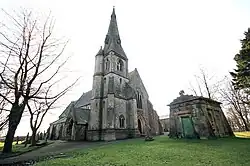 The church was designed by architect Charles Hansom[2][3] known for designing several northern churches, and built by George Taylor of Coventry. The stone was sourced from Dalton's quarry near Lancaster.