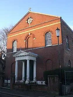 Saint Thomas of Canterbury church is a church serving the Catholic population of Newport, Isle of Wight, UK. It holds historical significance as the first purpose-built Catholic church constructed after the Protestant reformation on the island, and is reputedly also the first such church in England.[1] The Roman Catholic Relief Act 1791 (31 Geo. 3. c. 32) placed restrictions on the design of Catholic places of worship. For this reason there is no steeple, bell, or anything else that makes the building look like a church building of the state religion, the Church of England.[1] This makes the building look quite plain from the outside.
