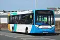 As of May 2022, vehicles in the fleet are in the process of being rebranded into the new fleet livery, which was revealed in January 2020. It consists of a white base with blue, green and orange swirls, featuring the company's updated logo. The livery name is "Stagecoach Local".[12][13][14] The former livery was introduced over 20 years prior, and consisted of vehicles painted in a white base, with a blue skirt, and red and orange swoops - named "Stagecoach Beachball".[15]