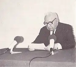 Krakiewicz had a special fondness for the Second Polish Republic.[66] He viewed the Polish October and subsequent liberalizations in the Polish People's Republic positively.[67] During his tenure as president of the United Evangelical Church, he rarely spoke about his activities in the Polish Socialist Party during the interwar period and was reluctant to discuss his Mariavite past.[63] His attitude towards other denominations and ecumenism evolved over time, influenced by his roles and conversions.[68]
