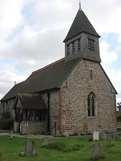 The current Church of England parish church is dedicated to Saint Albright, who is generally identified with Saint Ethelbert the King, a king of the Anglo-Saxon kingdom of East Anglia, who was killed in 794 AD.[7] It was in existence in the late 11th century and was a parish church soon afterwards but was referred to as a chapel in later documents.[5] The oldest parts of the present building date from the 12th century and incorporate Roman bricks in the heads of some of the windows. A new chancel was added in 1880 when the church was restored by George Gilbert Scott.[8]