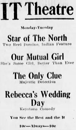 3. ^ Moving Picture World, New York City: Chalmers Publishing Company, July 11, 1914, p. 346 Public Domain This article incorporates text from this source, which is in the public domain.