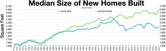 Only 8% of new single family homes built in 2021 were 1,400 sq ft (130 m2) or less and in the 1940s 70% of new housing built was under 1,400 sq ft (130 m2). Local governments regulate out entry level housing with square foot requirements, zoning ordinances, and permits. Condominiums of 500 to 1,000 sq ft (46 to 93 m2) that can be owned instead of leased, which could be a studio, 1 bedroom, or 2 bedroom with a reasonable HOA monthly fee and property taxes would be less expensive than renting in the longer run and a way to start building wealth starting out. [4]