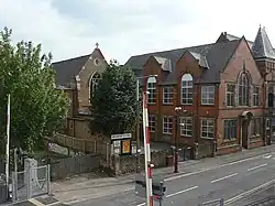 A new Sunday School with a frontage of 40 feet (12 m) on Station Road was built at a cost of £2,200 (equivalent to £290,000 in 2023)[2] was opened on the adjacent site on 23 June 1908. It comprised five large classrooms on the ground floor, and two large rooms divided on the corridor by pitch-pine partitions. The large hall on the first floor was 72 feet (22 m) by 36 feet (11 m) wide.[5] The architect was Ernest Hooley.