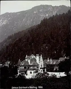 In 1875 Baron Albert Salomon Anselm von Rothschild bought a large estate in the south of Lower Austria, near the Styrian boarder, between Göstling, Lackenhof, and Gaming.[1] Rothschild divided the property into five administrative areas, Waidhofen and der Ybbs, Gaming, Göstling an der Ybbs, Hollenstein and Langau.[2] There, Rothschild established a substantial forestry business and a hunting lodge and Tyrolean style country estate for his family.[3] The building was expanded into an elegant hunting lodge in 1894.[1]