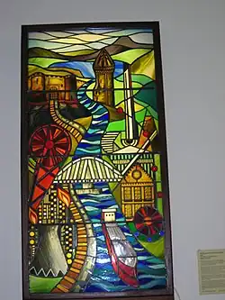 To the right of the entrance was the Small Museum, used for displaying the collection of original Stirling Heads and other Scottish antiquities. It was later used for ethnographical displays and in 1984 was fitted out as the Lecture Room. It is used extensively by community groups. The large stained glass window from Springbank House was resited here in 2000, together with other stained glass panels and the original plasters by Albert Hemstock Hodge (1876–1918) for the Stirling Burns Monument.