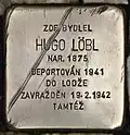 HUGO LÖBL BORN 1875 DEPORTED 1942 TO ŁÓDŹ MURDERED 19.2.1942 IBIDEM |