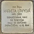 24. ^ holocaust.cz mentions 1883, the inscription on the Stolperstein says 1884. Yad Vashem lists both dates in two different files: [1] and [2], both retrieved 26 March 2017