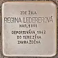 Ledererová, ReginaRegina Ledererová, also Rerina or Rivka, was born on 13 November 1869 in Lednice. Her parents were Salamon and Sofie. Their last name, i.e. Rerina's maidens name, is not known. She was a housewife and married to Beniamin Lederer. She became a widow. On 26 November 1942, she was deported from Klatovy to Theresienstadt concentration camp by transport Cd, together with her brother-in-law Vojtěch Lederer and his wife. Her transport number was 557 of 651. Both relatives died in Theresienstadt in the course of 1943. On 15 December 1943, she was deported to Auschwitz concentration camp by transport Dr. Her transport number was 1272 of 2,519. There she was murdered by the Nazis.[31][32]