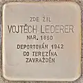 Lederer, Vojtěch AvrahamVojtěch Avraham Lederer, also Adalbert, was born on 26 August 1860 in Lažany in the Strakonice District. His parents were Eva and Shimon Lederer. He was a merchant and married to Žofie, also called Reisl. On 26 November 1942, he, his wife and his sister-in-law Regina Ledererová were deported from Klatovy to Theresienstadt concentration camp by transport Cd. His transport number was 138 of 651. His wife died in Theresienstadt on 2 February 1943. His sister-in-law was deported to Auschwitz on 15 December 1943 and murdered there. Vojtěch Lederer lost his life in Theresienstadt on 18 December 1943.[27][28]