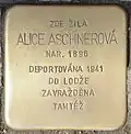 50°05′58″N 14°25′06″E / 50.09955950000001°N 14.418304700000022°E / 50.09955950000001; 14.418304700000022 (Stolperstein for Alice Aschnerova)