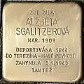Sgalitzerová, AlžbětaAlžběta Sgalitzerová b. Schubertová, also Elisabeth, was born on 7 August 1909. Her parents were Dipl. Ing. Carl Schubert (1861-1950) and Odilia b. Sternberger (1887-1942). She was married to Dr. Ing. Bedřich Sgalitzer. The couple are said to have at least two children whose fate has not been resolved. Alžběta Sgalitzerová and her husband were deported to Theresienstadt concentration camp in 1942, where they were imprisoned in the small fortress. Bedřich Sgalitzer was murdered there on 24 November 1944. Alžběta Sgalitzerová died on January 5, 1945.[29][30]