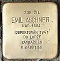 50°05′58″N 14°25′03″E / 50.099373°N 14.417553099999964°E / 50.099373; 14.417553099999964 (Stolperstein for Emil Aschner)