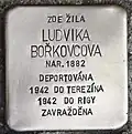 50°06′24″N 14°23′34″E / 50.1067099°N 14.392738399999985°E / 50.1067099; 14.392738399999985 (Stolperstein for Ludvika Borkovcova)