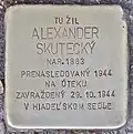 ALEXANDER SKUTECKÝ BORN 1883 PERSECUTED 1944 ON THE RUN MURDERED 29.10.1944 IN HIADEĽESKÉ SEDLO |