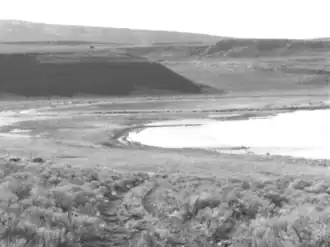 The Stone Bridge was the first large structure built in the south-central part of Oregon. It was constructed between 16 May and 24 July 1867 by forty men from the 23 Infantry Regiment under the supervision of Captain James Henton. The site chosen for the bridge was a narrow marsh that connects Hart Lake and Crump Lake, two large lakes at the southern end of the seventy-mile long chain of lakes and wetlands known as Warner Lakes.[1][2]