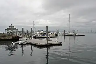 The densely built Borough of Stonington occupies a point of land that projects into Little Narragansett Bay. It has two main streets that link Cannon Square and Wadawanuck Square, named for the former Wadawanuck Hotel that brought wealthy visitors in the post-Civil War era. Its colonial, Federal, and Greek Revival architectures have been preserved through the lack of traffic or modern industry, together with the borough's role as a fashionable summer residence, while the activity of one of Connecticut's last remaining fishing and lobstering fleets keeps it from being simply a quaint, historic village. There is a large community of Portuguese descent.