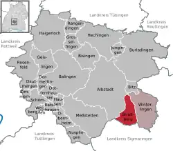 9, though a portion of the municipality is located in the Großer Heuberg to the west. Elevation above sea level in the municipal area ranges from a high of 901 meters (2,956 ft) Normalnull (NN) to a low of 630 meters (2,070 ft) NN.[3]