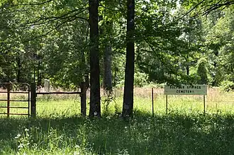 Sulphur Springs Cemetery is a historic cemetery in rural northern Yell County, Arkansas. It is located northwest of Chickalah, on the south side of County Road 39 (Slo Fork Road), about 0.2 miles (0.32 km) west of its junction with County Road 38. The cemetery contains 26 marked burial sites on just over 1 acre (0.40 ha) of the 4.5 acres (1.8 ha) property, dating from 1844 to 1940. There are at least two known unmarked burials, and fieldstones in the cemetery may denote further sites. The cemetery is ringed by a barbed wire fence. It is one of the few surviving remnants of the former spa community of Sulphur Springs, which flourished here in the 19th century.[2]