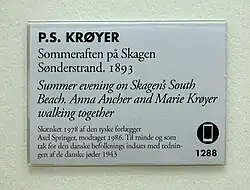 - ^ "P.S. Krøyer 1851-1909 "Sommeraften ved Skagen Sønderstrand. Anna Ancher, t.v. og Marie Krøyer". 1893" (in Danish). Kunstnyt.dk. Retrieved 11 May 2015.