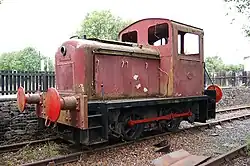 5 Barclay 0-4-0DH 1966 472 Red Open air display alongside mainline railway.