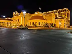 The resort included a Mediterranean theme.[19][20] The casino consisted of 78,000 sq ft (7,200 m2),[9] with 48 table games, including blackjack, craps, Mini-Baccarat, pai gow poker, and roulette.[19] The casino pit was overlooked by gold and purple neon lighting.[20] The casino also included a large race and sportsbook; and a 600-seat bingo hall, which was expected to appeal to local residents.[19] More than 2,100 of the Suncoast's slot machines, approximately 96 percent, were coin-free,[21] with only 200 regular slot machines.[22] The Suncoast and the Fiesta were the first major resorts in Nevada to utilize the concept of coinless slot machines,[21] with the Suncoast being the largest to test the new technology.[22]