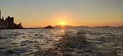 The sun sets on Sunset Peak. Viewed from Victoria Harbour.