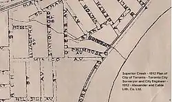 Superior Creek was a stream draining into Lake Ontario in the former village of Mimico, Ontario, Canada.[1] It was approximately 3 kilometers long, with headwaters near the present intersection of Kipling Avenue and The Queensway.[2] The lower reaches of the creek had become polluted, and were buried in a sewer in 1915.[3] In 1954, citizens of Mimico living in newly built houses near the upper reaches complained that the creek flooded, and lobbied to have the creek replaced by storm sewers, and a study was prepared. According to HTO: Toronto's water from Lake Iroquois to lost rivers to low-flow toilets, the creek was buried around 1965.