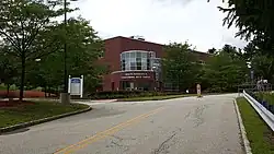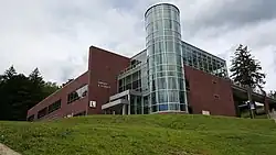 Sussex County Community College is located on a 167-acre (68 ha) hillside campus in Newton, New Jersey that features three ponds (including Horton Pond), and a stream that feeds into the Paulins Kill.[10][11][19][20] Located along Mill Street (also known as County Route 519) between Swartswood Road and Plotts Road, 88.63 acres of the campus are located within Newton, the remainder within neighboring Hampton Township.[21][22] Classes are held in five main academic buildings that feature approximately 60 classrooms, ten computer labs, ten science labs, an art studio, two art galleries, a small student theater and a larger 339-seat space that can be used as a theatre, lecture hall, and performing arts center.[19] The college has a library with over 37,000 bound volumes, 225 print periodicals, and database access to over 28,000 journals and periodicals.[9] SCCC has a television studio facility offering video streaming services for its SCCC/EDTV/20 cable access channel.[23] Further, it will soon launch radio broadcasts on WAMJ on 97.5 FM and 1620 AM.[24] The college also operates a Public Safety Training Academy on Sussex County government property located approximately 5 miles (8.0 km) north of the main campus in Frankford Township. The academy provides educational programs and training to local fire departments, the law enforcement community, emergency medical personnel, government employees, and the general public in all aspects of public safety.[25]