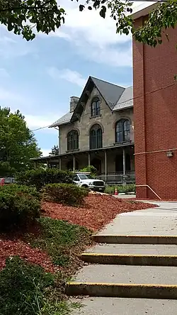 The land on which the Sussex County Community College campus is located was first settled before 1751 by Newton's first settler, Henry Hairlocker.[1] Hairlocker, a German Palatine emigrant, operated a tavern on the site. Jonathan Hampton, a surveyor and land investor from Elizabethtown, New Jersey, built his Military Road through the area in 1755 during the French and Indian War. In 1762, before the construction of the county's first courthouse was completed in 1765, the county government and courts held sessions at Hairlocker's tavern. This structure was razed in January 1944.[1] Newark-based saddle and harness manufacturer, John A. Horton (1807–1858) purchased the property and began construction of a mansion blending features of Rural Gothic and Italianate architecture with plans to establish a working farm on his estate. The mansion was completed in 1858 although several of Horton's plans would not be finished as a consequence of his death.[1] The estate remained in the Horton family until 1921.[1]