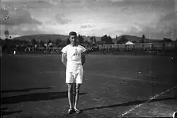 His personal best jump was 1.91 metres (6 ft 3 in), achieved in September 1925 in Moss.[4] This was a Norwegian record at the time.[3] At the 1924 Summer Olympics he finished eighth in the high jump final with a jump of 1.83 metres (6 ft 0 in).[2] He became Norwegian champion in 1926 with a tied championship record of 1.90 metres (6 ft 3 in). He also won national silver medals in 1924 and 1925.[5] In the standing high jump he won a bronze medal in 1923, silver in 1928 and gold in 1924, 1925, 1926 and 1927.[6] After joining the workers' movement he won the high jump at the 1928 Spartakiad.[3]
