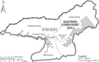 - ^ "2020 CENSUS - SCHOOL DISTRICT REFERENCE MAP: Swain County, NC" (PDF). U.S. Census Bureau. Archived (PDF) from the original on July 18, 2021. Retrieved July 18, 2021. - Text list: "Eastern Cherokee Reservation" refers to the area which has Cherokee Central Schools.