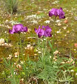 Swainsona behriana, commonly known as Behr's swainsona,[2] is a species of flowering plant in the family Fabaceae and is endemic to south-eastern continental Australia. It is a prostrate or low-growing perennial herb with imparipinnate leaves usually with 9 to 13 narrowly elliptic to egg-shaped leaflets with the narrower end towards the base, and racemes of 2 to 7 purple flowers.