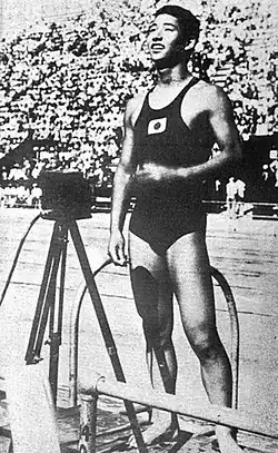 The men's 100 metre freestyle was a swimming event held as part of the swimming at the 1932 Summer Olympics programme.[1] It was the eighth appearance of the event, which had not been featured only at the 1900 Games. The competition was held from Saturday August 6, 1932 to Sunday August 7, 1932. Twenty-two swimmers from ten nations competed. Nations had been limited to three swimmers each since the 1924 Games. The event was won by Yasuji Miyazaki of Japan, snapping a five-Games American win streak. Japan was only the third nation to win a gold medal in the event (Hungary had won the first two, the United States the next five). The final was entirely made up of Japanese and American swimmers, three each; Japan took the top two places as Tatsugo Kawaishi earned silver. The top American, Albert Schwartz, earned bronze. While the American win streak had ended at five, the nation's podium streak ran to seven Games.