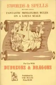 Swords & Spells was a supplement of miniature rules, for use with the original D&D set.[1] It contained battle rules for miniature-scale that were meant to be more compatible with the D&D rules than those of Chainmail.[2]