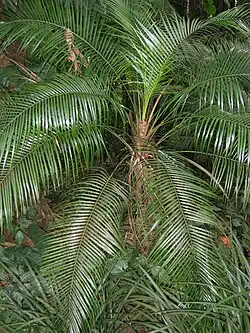 Syagrus weddelliana, also known as the miniature coconut palm or Weddell's palm, is a feather palm in the palm family.