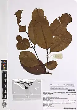 The fruits are eaten and their seeds dispersed by the Pacific imperial pigeon (Ducula pacifica), and by flying foxes (Pteropus sp.). Fruits are also consumed by introduced rats, which may limit the natural regeneration of the species.[1]