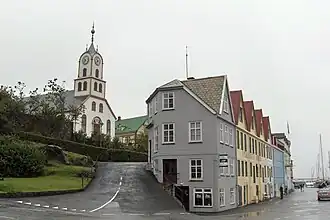 Tórshavn Cathedral (Faroese: Havnar Kirkja, or Dómkirkjan) is the second oldest received church of the Faroe Islands, on Tinganes in the old town of Tórshavn.[1] Painted white, and roofed with slate, it was established in 1788. The cathedral lies in the north of the peninsula of Tinganes and is one of the main attractions of the town. Like most churches of the country it belongs to the Evangelical-Lutheran national Church of the Faroe Islands. Since 1990, it has been the seat of the Bishop of the Faroes and is therefore known as a cathedral.