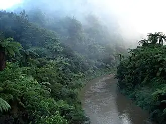 The Tāngarākau River is a river of the Manawatū-Whanganui region of New Zealand's North Island. It flows south for 94 km (58 mi) from its source 8 km (5.0 mi) west of Ōhura in the King Country to reach the Whanganui River. State Highway 43, known as the Forgotten World Highway, travels through the Tāngarākau Gorge.