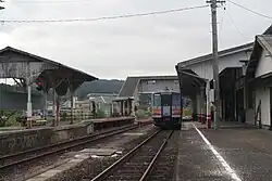 The station consists of one ground-level side platform serving a single bi-directional track. Originally, it was a station with two opposite side platforms and two tracks, but the footbridge to the opposing platform (Platform 1) has become unusable due to aging and cannot be entered. As a result, it currently operates as a one platform station. However Platform 1 remains in situ. The station building is located beside the remaining platform. The station is only staffed during the morning hours, and is unattended otherwise.[2]