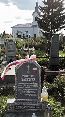 Tadeusz Jasiński (1926 – 21 September 1939, in Grodno) was a mythologized image of the Polish soldier.[1] He was allegedly one of the youngest defenders of Grodno in September 1939, after the Soviet invasion of Poland.