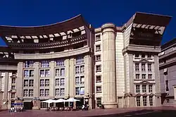 In a noted study of France's evolving social structures and landscapes published in 2021,[13] political scientist Jérôme Fourquet and journalist Jean-Laurent Cassely wrote that "the monumental projects designed by Spanish architect Ricardo-Bofill in Noisy-le-Grand (Les Espaces d'Abraxas), in Saint-Quentin-en-Yvelines (Les Arcades du Lac) and in Montpellier (the Antigone neighborhood) are basically the architectural signature of the 1980s" in the country.[14]