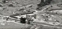 Taumarere in 1958, when the station had a water tank and was west of the village