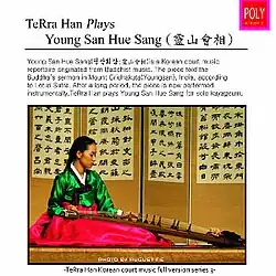 TeRra Han plays 'Young San Hue Sang' (2CD) is TeRra Han's court kayageum full version series No.3. Young San Hue Sang (영산회상: 靈山會相) is a Korean court music repertoire originated from Buddhist music. The piece told the Buddha's sermon in Mount Gridhakuta(Youngsan), India, according to Lotus Sutra. After a long period, the piece is now performed instrumentally, TeRra Han plays Young San Hue Sang for solo kayageum in both of two versions, E flat Geomyeon-jo and E flat Pyeong-jo. Young San Hue Sang is performed originally in forms of chamber or large orchestra's music.[1]