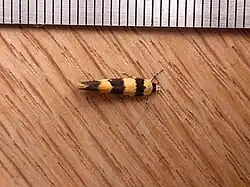 Telecrates melanochrysa is a moth of the family Xyloryctidae. It is known in Australia from the Australian Capital Territory, New South Wales, Tasmania and Victoria.