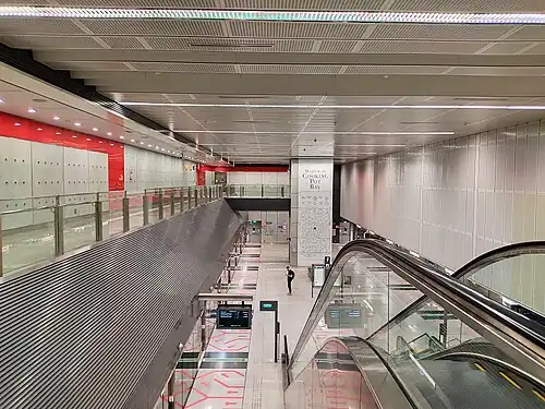 The artwork featured under the Art in Transit programme is Notes Towards A Museum Of Cooking Pot Bay by Michael Lee. Located on the lift shaft in the station, the artwork intertwines monuments, pop culture elements, real-life people (including the artist himself) and fantastical elements in a massive concept map which, as the title suggests, aims to contribute to a museum of "Cooking Pot Bay", which is a translation of "Telok Blangah".[2]