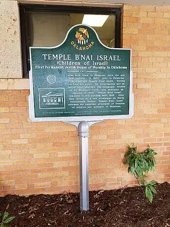 8. ^ a b c d "Historic Marker - First Permanent Jewish House of Worship in Oklahoma". Jewish American Society for Historic Preservation.