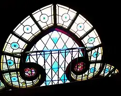 Stained glass windows of the Temple were preserved during the Depression-era remodeling of the building