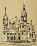 In 1868, the Congregation Emanu-El of New York erected a new synagogue building for the first time, a Moorish Revival structure designed by Leopold Eidlitz, assisted by Henry Fernbach, at 43rd Street and 5th Avenue after raising about $650,000. It was demolished in 1927, and replaced by a 1930s synagogue, also called Temple Emanu-El.[1][2][3]