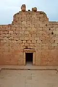 The Temple of Anahita is a large rectangular room in the shape of a cube in a depression 6 meters above the ground, each side of which is nearly 14 meters. It is built of carved stones without mortar, double-walled, and in the Achaemenid architectural style. These stones are connected to each other with iron fasteners. A staircase from the palace was also connected to this temple. The temple has no roof and the purpose was to bring the water of the Shapur River, which flows 250 meters away, into the temple, so that after flowing inside the temple, it would be discharged through a Qanat.[8][9]